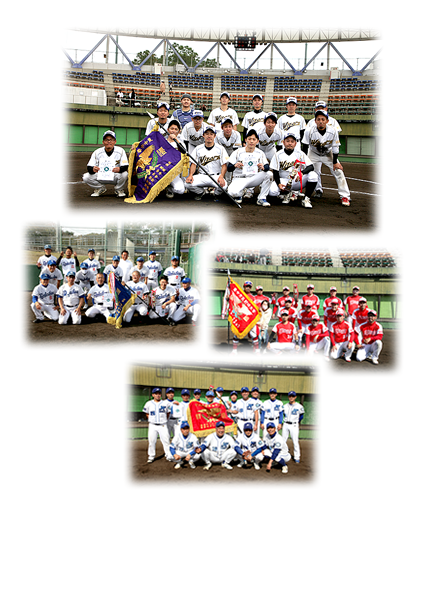 野球連盟では近隣都市交流大会に参加しています。一般の部では好成績のチームに豊中市代表として参加頂いております。
